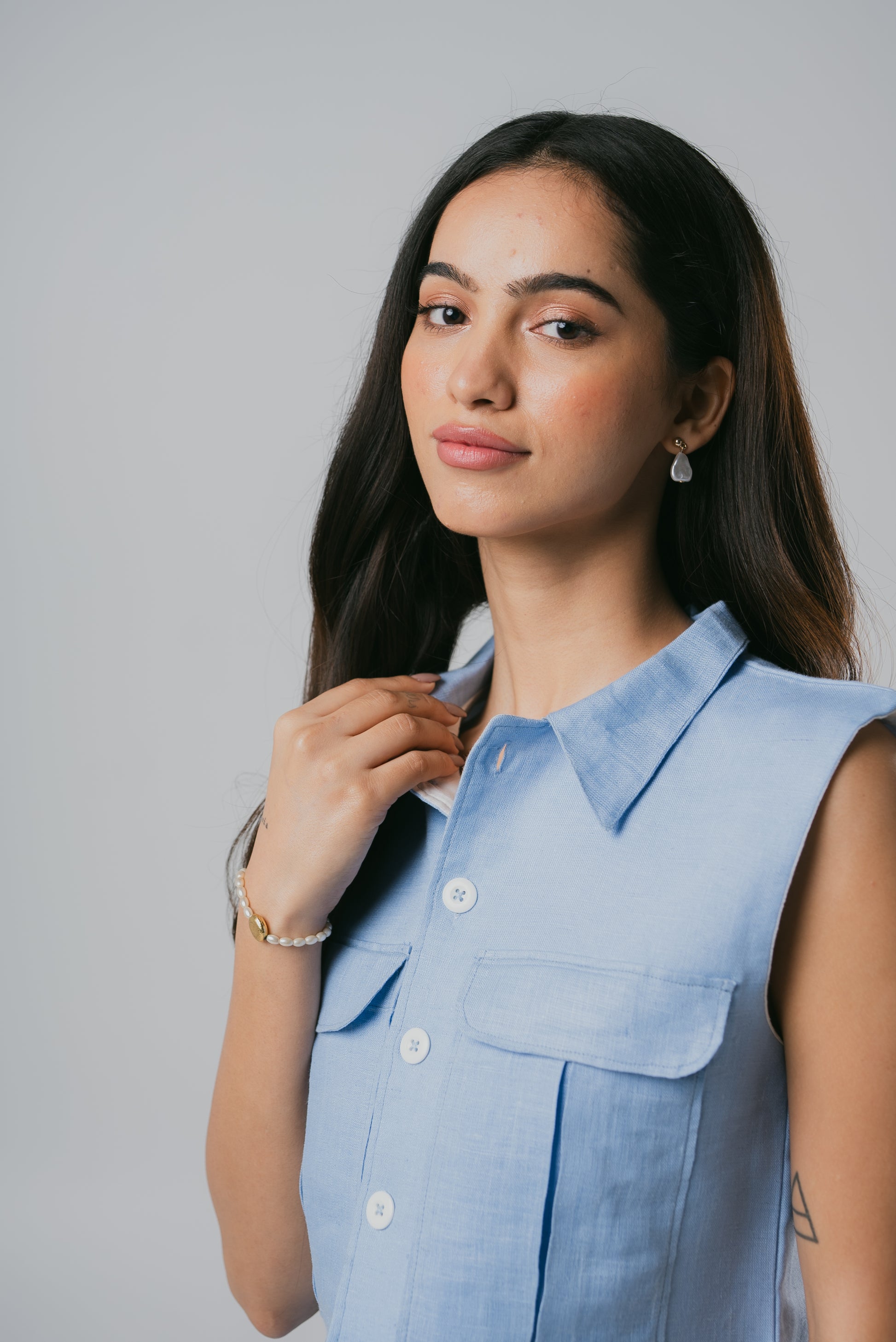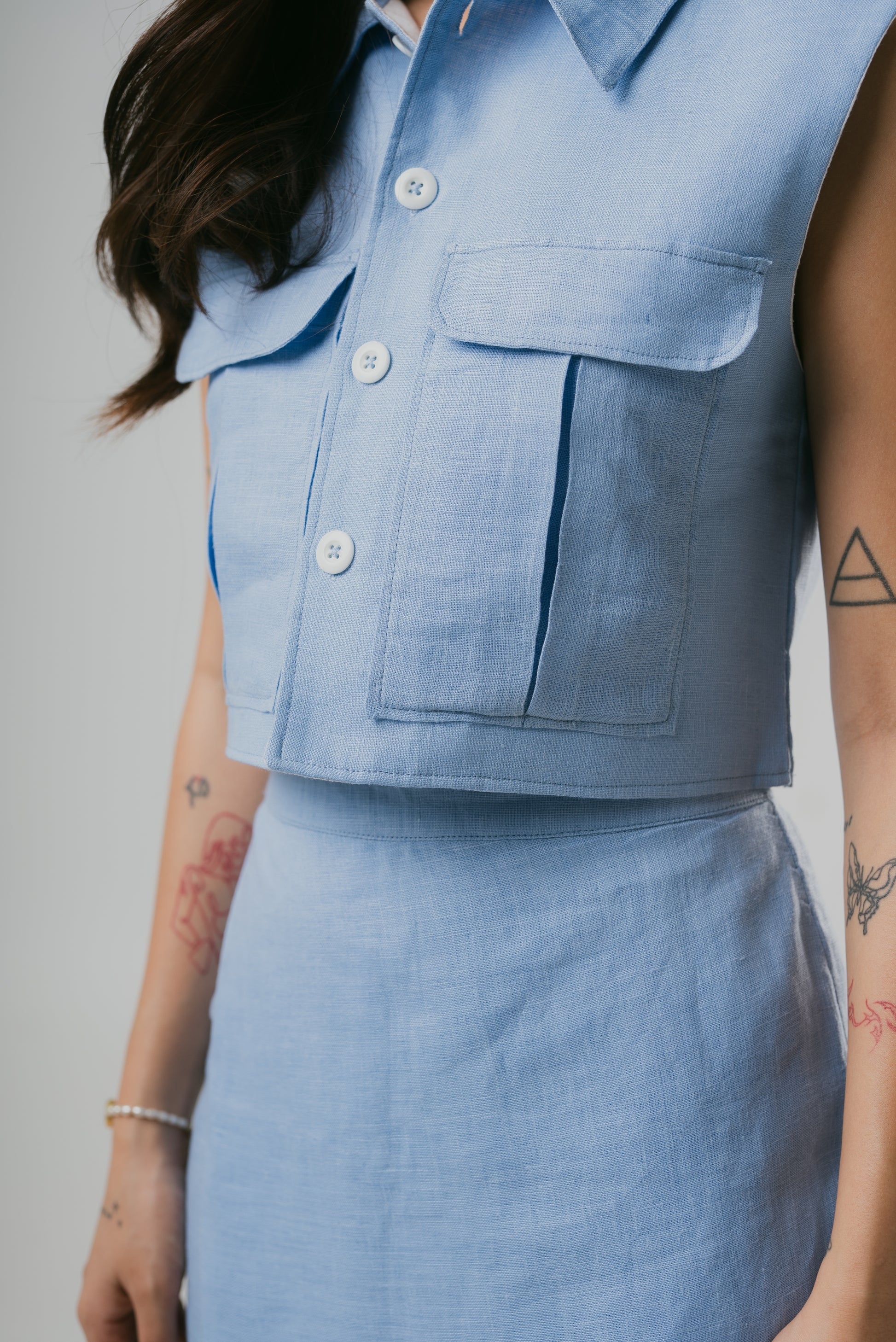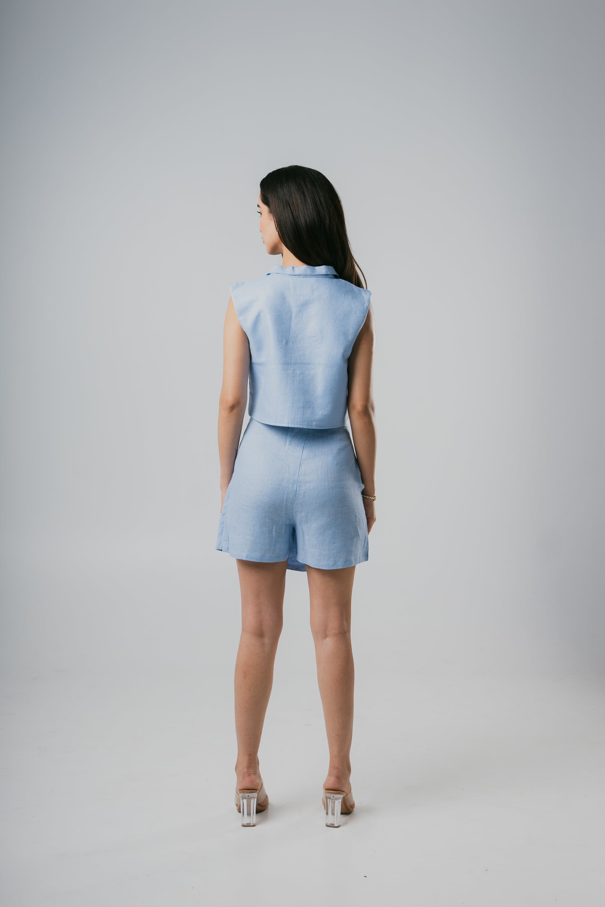 This smart, light blue co-ord set is perfect for any occasion. The top is paired with a skort featuring a stylish, side-tie and zip. Its versatility allows you to dress it up or down with minimal fuss, making it ideal for hectic days.
