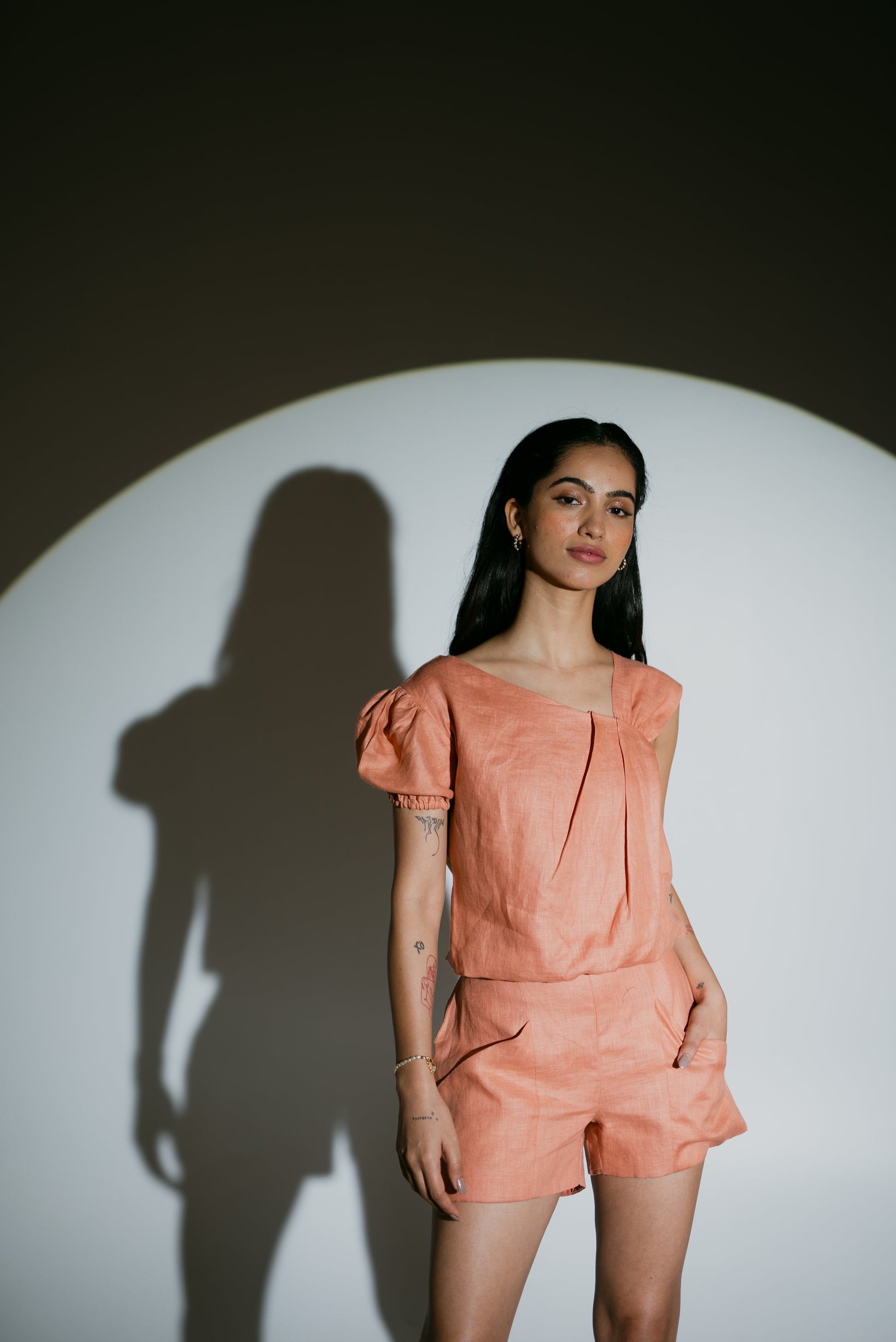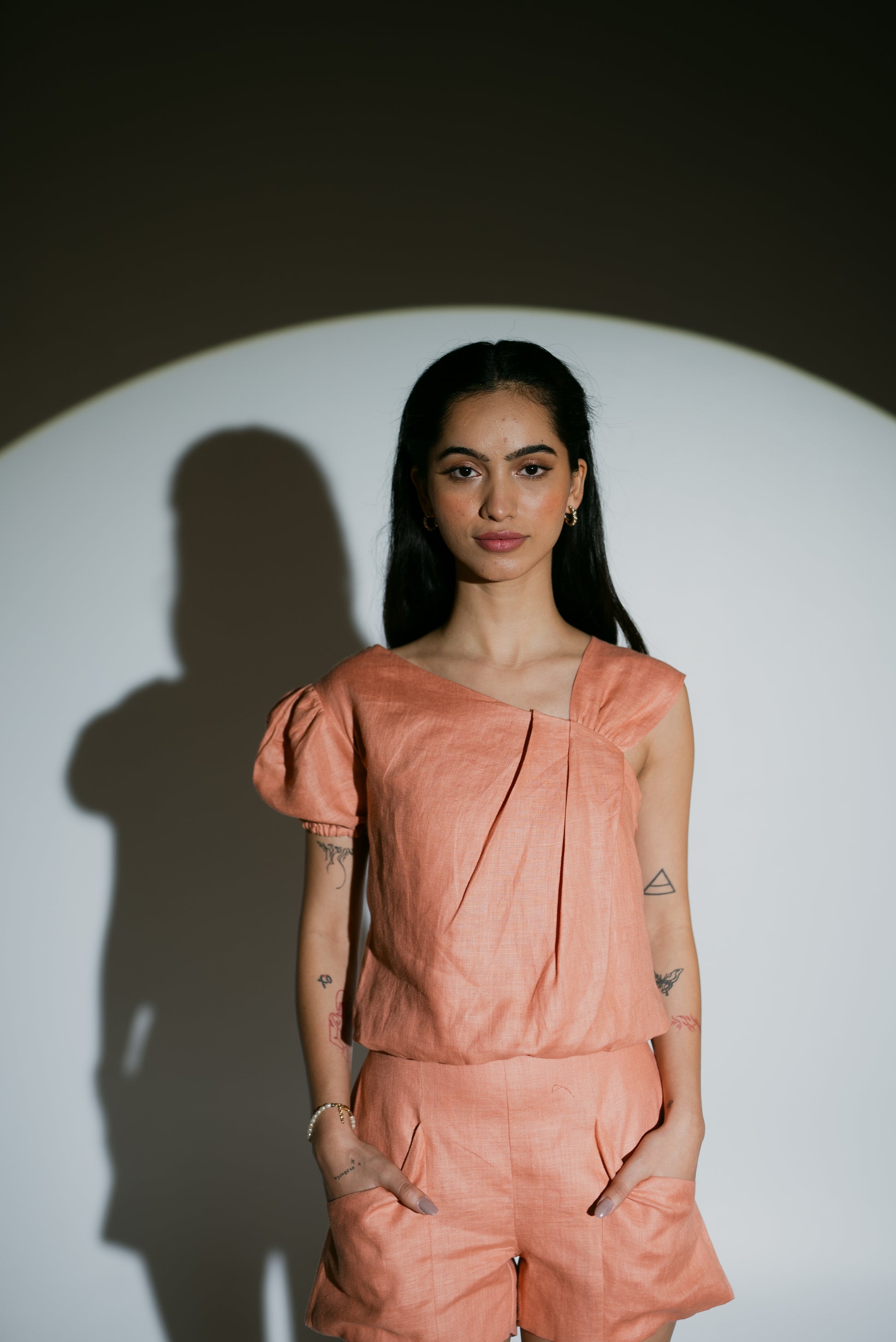 A fusion of comfort and style. Crafted from premium pure linen, this top boasts an asymmetrical design for a unique touch. Minimalistic yet elegant, it effortlessly transitions from casual to formal. Versatility meets everyday luxury, allowing your individuality to shine. Elevate your wardrobe with this timeless piece.