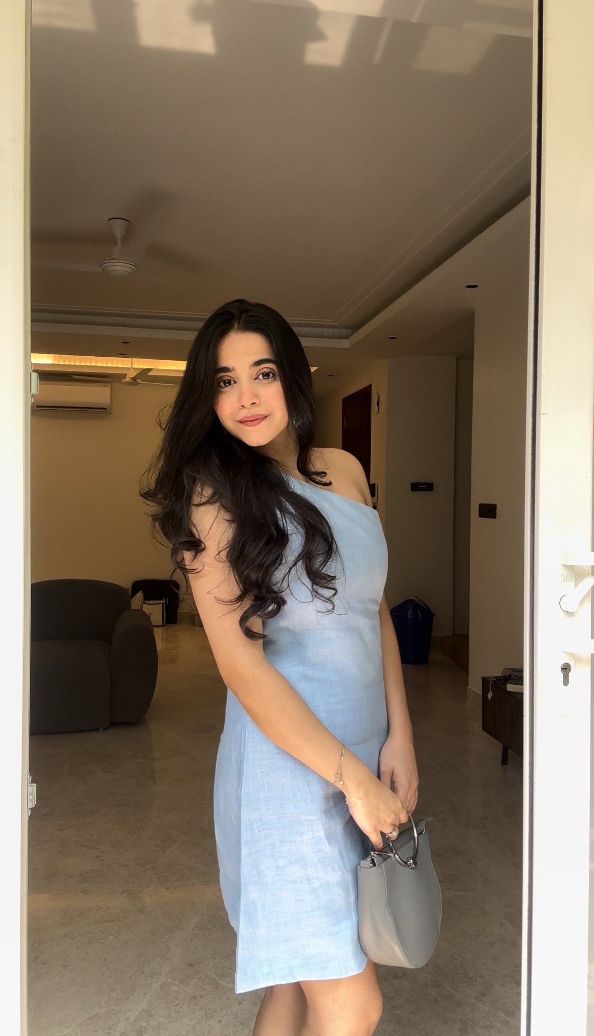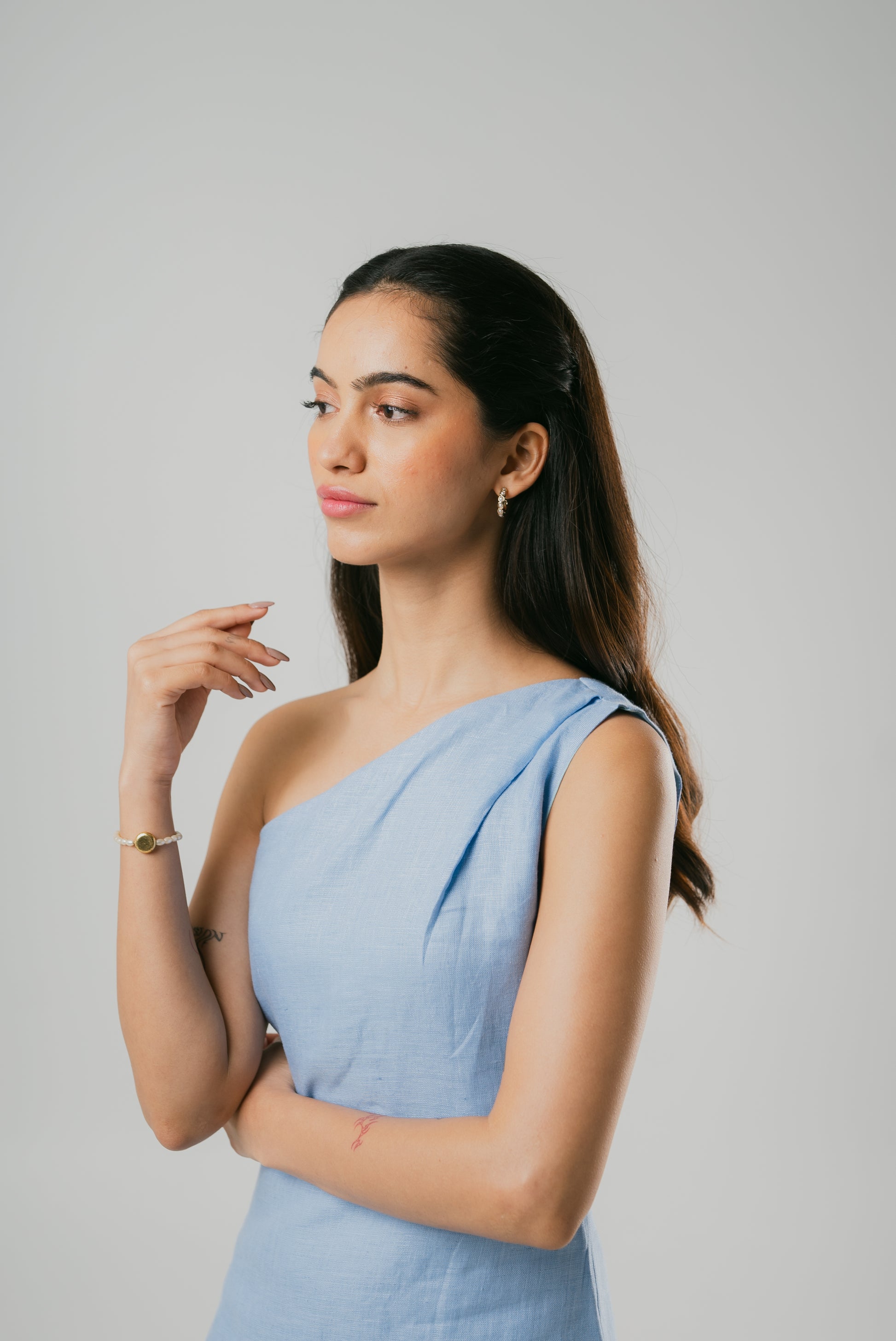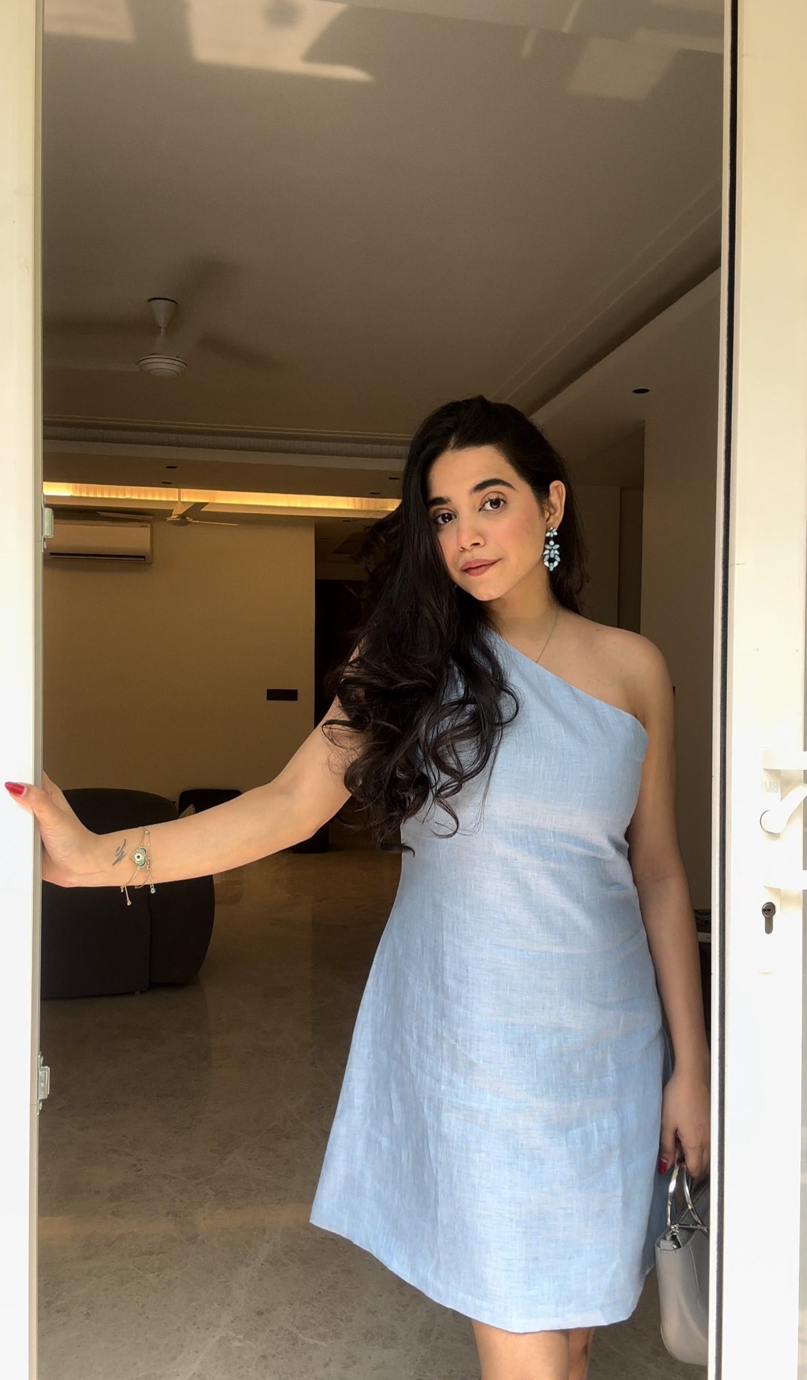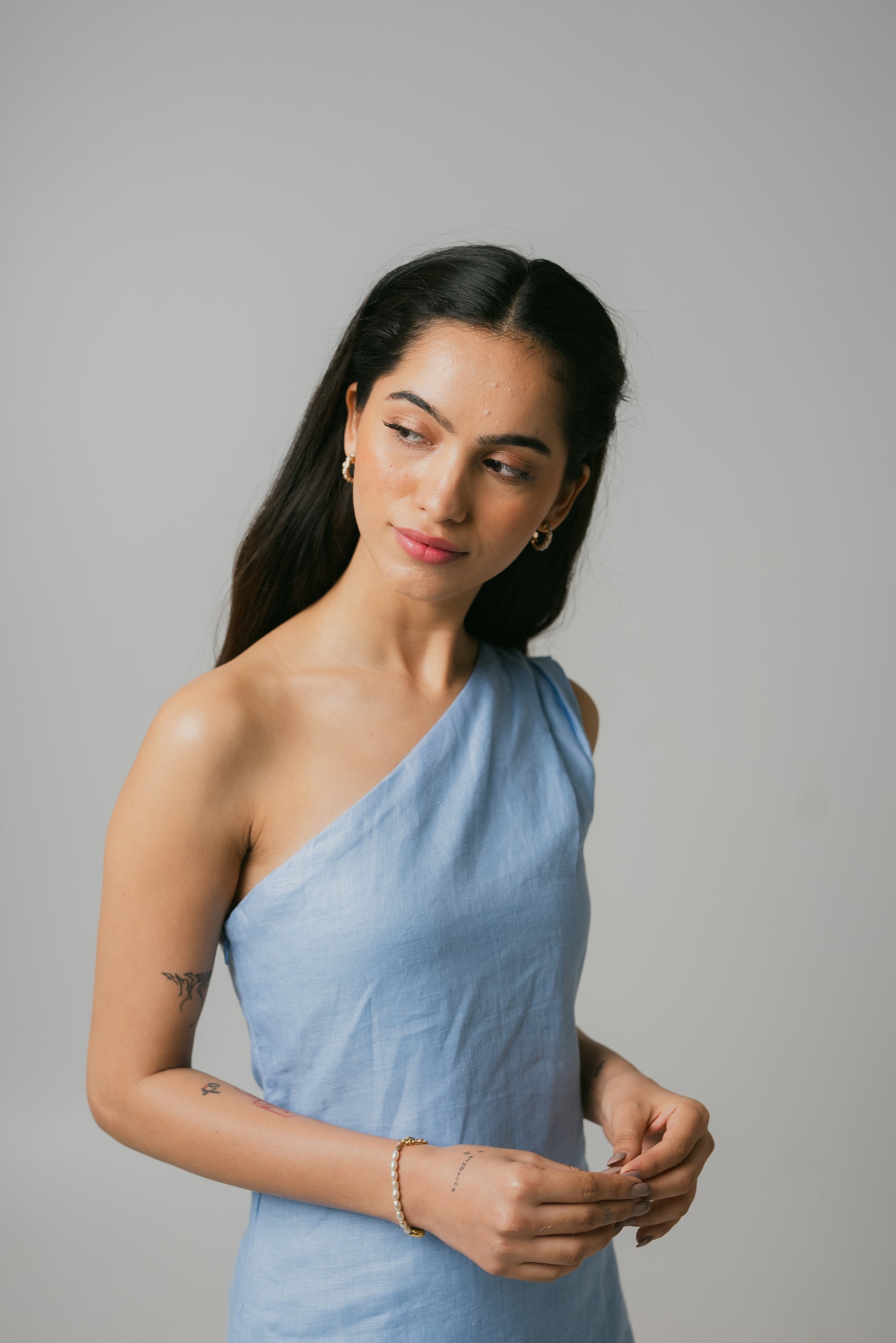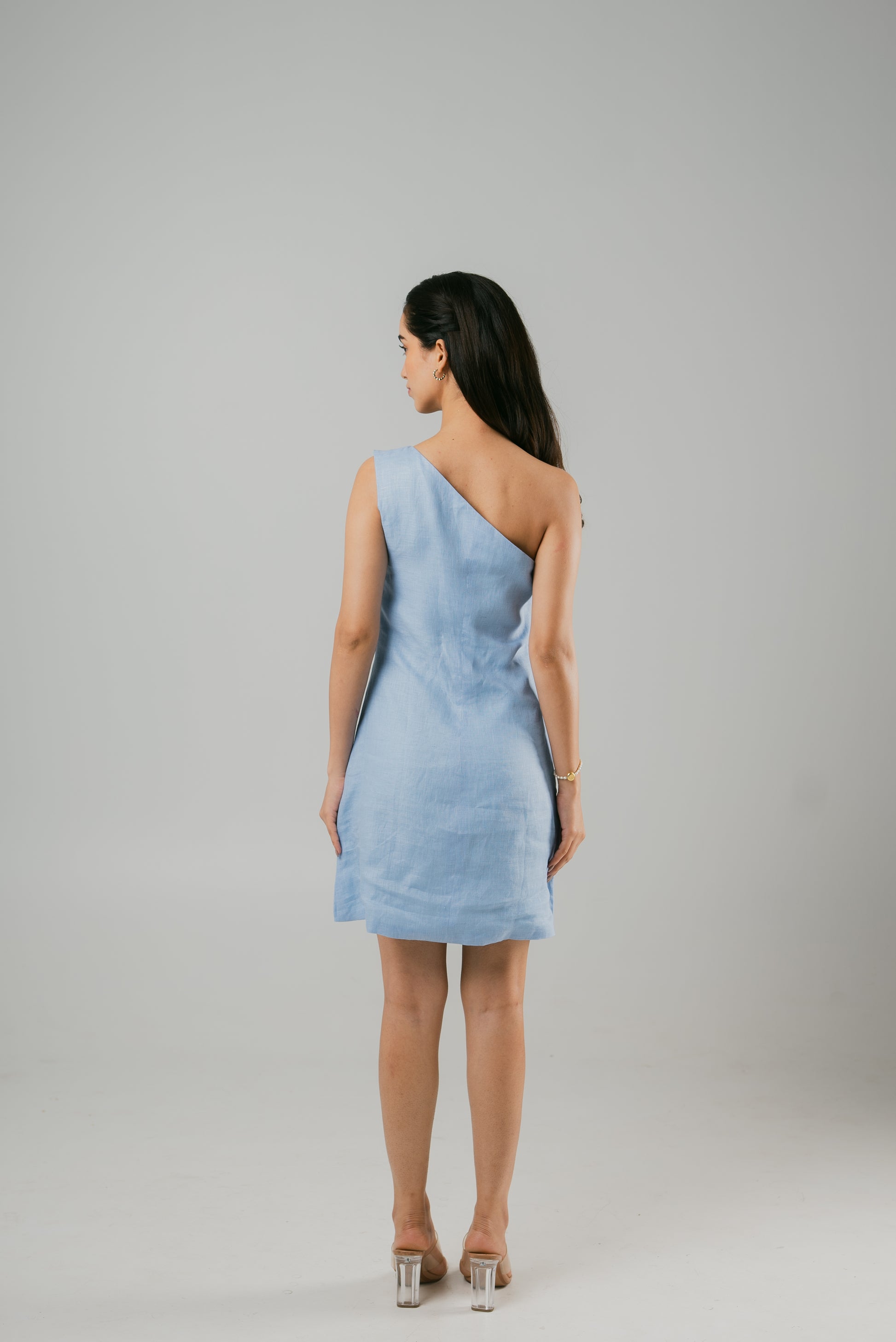 Embrace elegance in our one-shoulder short dress. The size zip ensures a snug fit while the comfort-centric design keeps you at ease. Radiate in the calming shade of blue, exuding both confidence and style with every step.