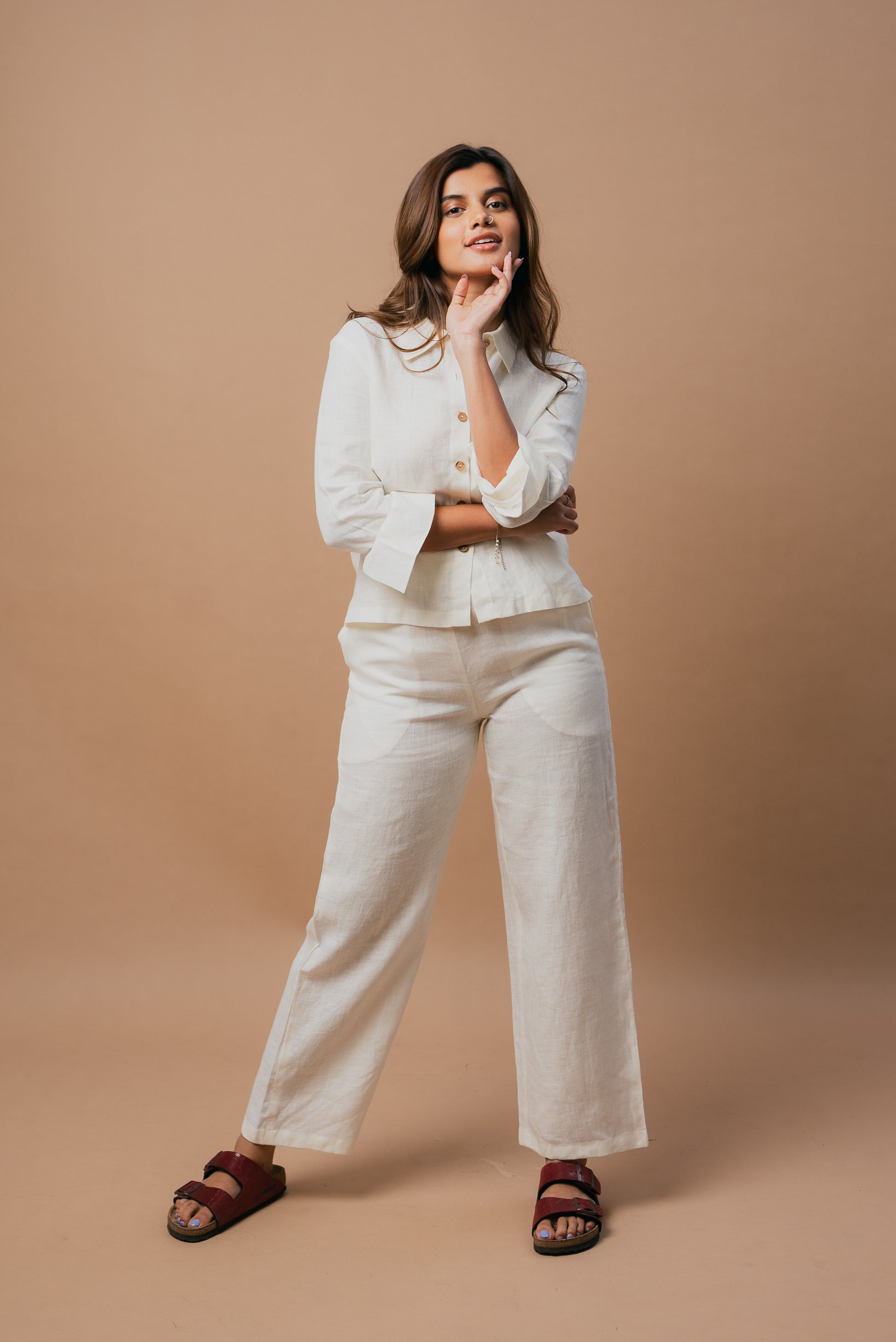 Linen Straight Leg Full-Length Pants: Enjoy timeless style and comfort in our linen pants. Featuring an elastic back, front belt, and side zip, they offer a tailored fit and easy wear. Elevate your wardrobe with these versatile, elegant pants that blend the beauty of linen with everyday comfort.